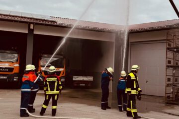 Im Anschluss an die Übung gab es noch eine kurze Nachbesprechung. Besonderes Augenmerk legten die Übungsbeobachter Franz Hochhäuser (Kreisbrandinspektor) und Rainer Tippl (Kreisbrandmeister) auf das Fungieren der Einsatzleitung sowie den reibungslosen Ablauf der Rettung der vermissten Personen im “Brandgebäude”.