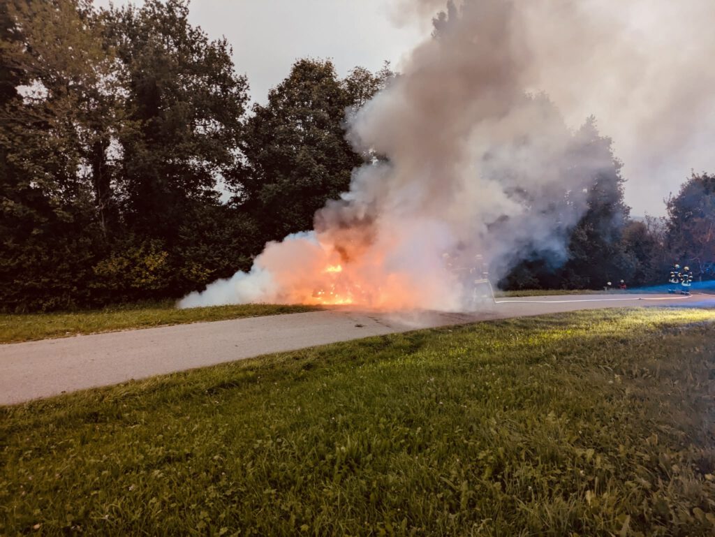 Übung bestand darin, dass ein beteiligter PKW sofort in Brand geriet, der unter Atemschutz
