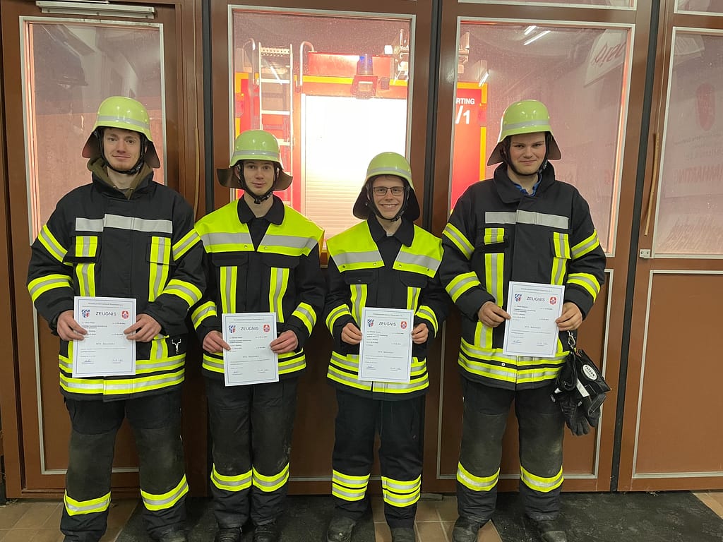 Nach mehrwöchiger und intensiver Prüfungsvorbereitung konnten am vergangenen Dienstag vier Mitglieder unserer Jugendfeuerwehr die Abschlussprüfung zum Basismodul der Modularen-Truppausbildung mit Erfolg abschließen.